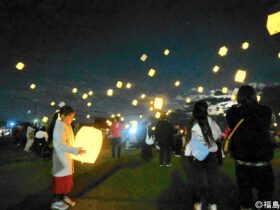 冬空に舞うほのかな光 発光ダイオード「スカイランタン」100基 福島県南相馬市の小高観光協