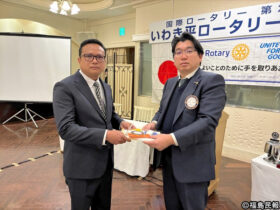 入会式で鈴木会長からバッジなどを受けるソータイさん(左) 2026/01/27 16:30 ロータリー米山奨学生として福島県いわき市の東日本国際大学に留学し、現在は市内で会社を経営す… -