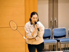 元バドミントン日本代表の大堀彩さん 福島県相馬市で講演 夢実現への歩み語る 選手らに技術指導も
