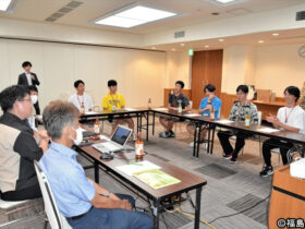 意見を交わす学生とプロジェクトメンバー 2025/10/05 16:47 東京大の自転車部は9月28日から30日まで、合宿で福島県いわき市を訪れた。29日、宿泊先のいわき新舞子ハイツ… -