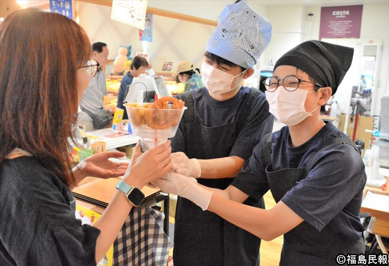 発売初日となった3日は3年生8人が道の駅なみえ内の「まちのパン屋さん ほのか」で商品の魅力を伝えた。畠山泰稀さん(15)は「浪江の良さを存分に感じ取ってほしい」と願った。