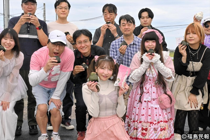 ファンとともにおにぎりをPRするもえのさん(前列中央)