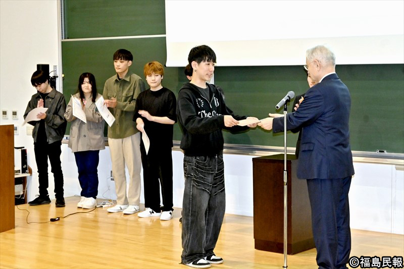▽総長賞=いわき市における観光客向け防災情報発信の強化案(二瓶怜侍)▽優秀賞=空き家・空き店舗を再活用した誰もが利用できる居場所づくり!(佐藤大翔)iwaki&fish(田中翔和)▽奨励賞=ネオ・フラシティプラン(佐々木岳)ホットな繫がりでクールな地域計画(成田萌乃佳)