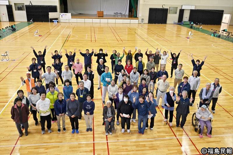 町社会福祉協議会の主催。約60人が参加した。吉田淳町長が「体を動かしながら交流を深めてほしい。まだ多くの課題が残っているが、着実に復興を進めていきたい」と述べた。仲野剛町議会議長があいさつした。