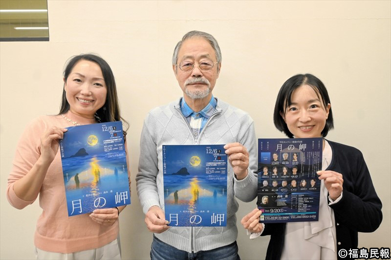 TOIカンパニーの橘那実代表、黒沢彩副代表、高木さんは福島民報社いわき支社を訪れ、「見応えのある作品になるので、ぜひ足を運んでほしい」とPRした。