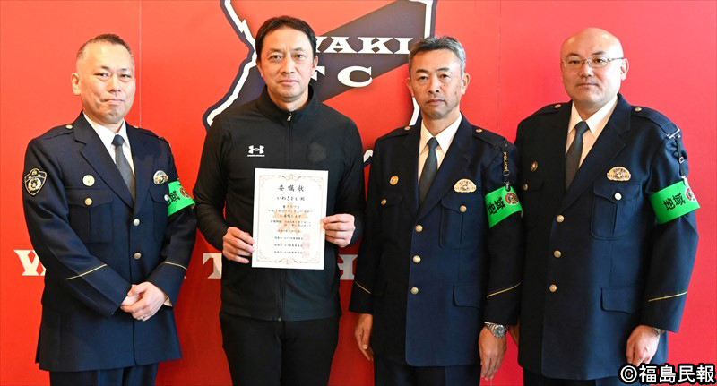 新設した役職で、出動式や交通・防犯教室に選手に参加してもらう他、いわきFCが運用するSNS(交流サイト)での防犯や交通安全の呼びかけに協力してもらう。試合会場での広報ブース出展も想定している。委嘱期間は来年1月1日から12月31日まで。
