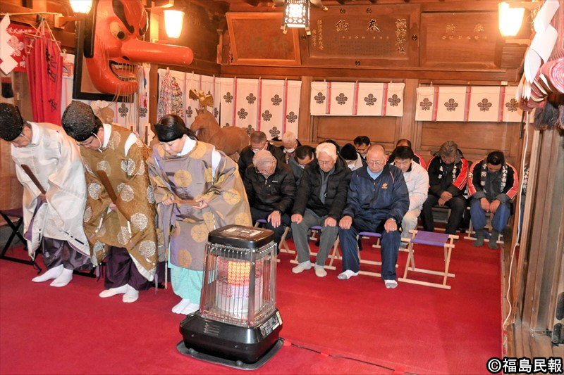 おたき上げ初の中止 林野火災注意報を受け 神事のみ厳かに執行 福島県いわき市の小名浜諏訪神社どんど祭