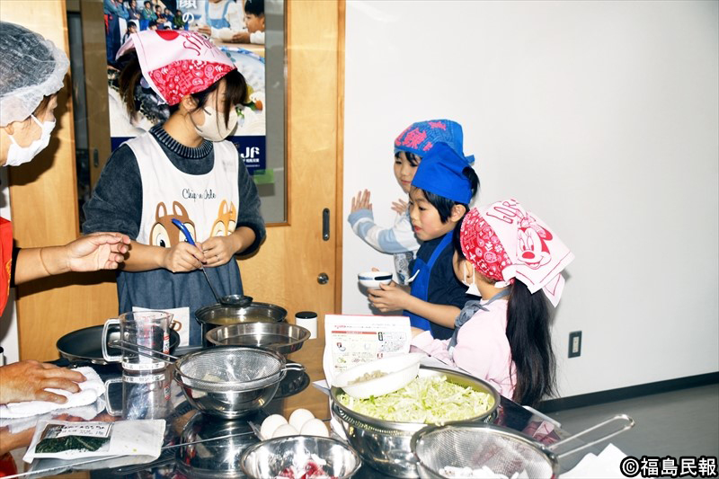 親子料理教室は14日、福島県相馬市の相馬双葉漁協で開かれ、親子が魚介類を使った料理作りに取り組んだ。